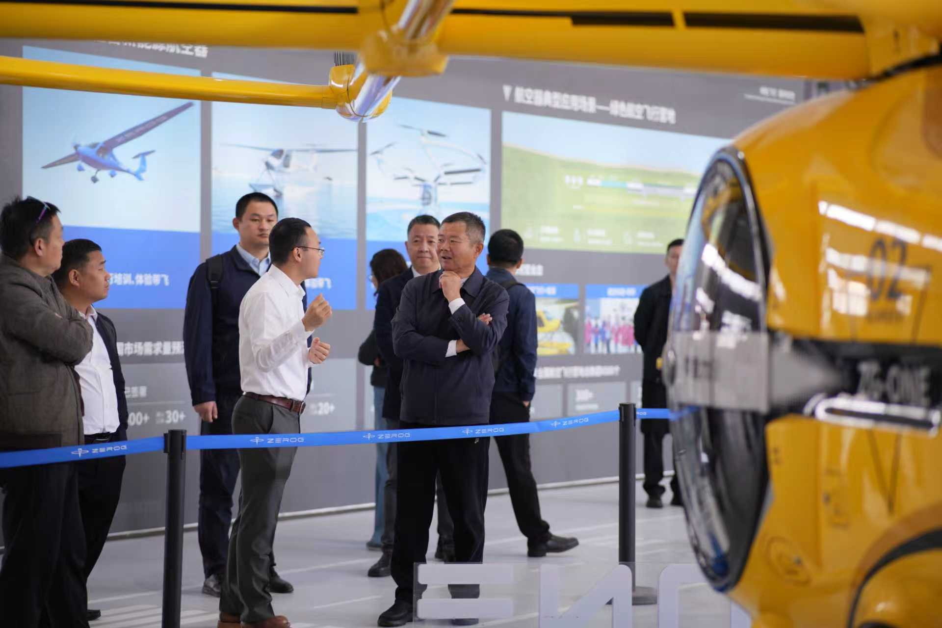 调研组一行在零重力飞机工业联合创始人兼COO石红的陪同下,参观零重力飞机工业展示中心,详细了解零重力飞机工业在新能源航空器整机研制、适航取证、商业化落地、融资进展等方面的最新成果与发展情况。