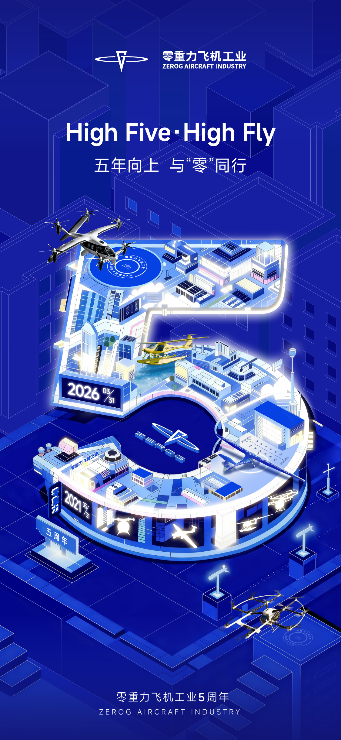 2026年3月31日,零重力飞机工业迎来了五周岁生日。在此,向所有一路同行、并肩奋斗的家人们,说一声:五周年快乐!