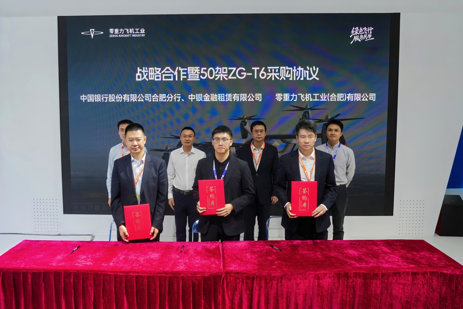 零重力飞机工业与中银金租、中国银行合肥分行签署“战略合作暨50架ZG-T6订单协议”,为ZG-T6的市场落地提供金融支持与订单保障。